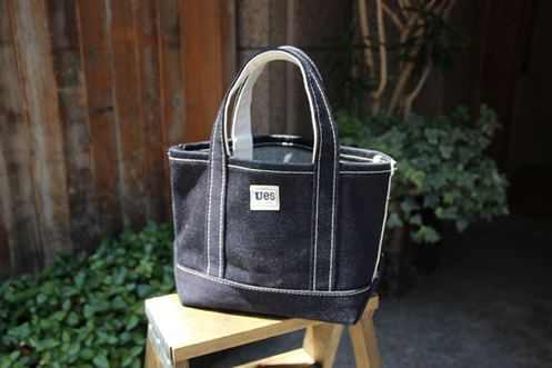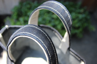 23オンスのしっかりとしたデニム生地と、底のマチも結構あるので、正方形のお弁当箱をいれても傾くことがありません。