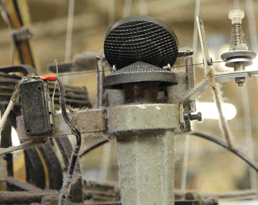旧式の編み機に使われる縄目模様を出す装置。